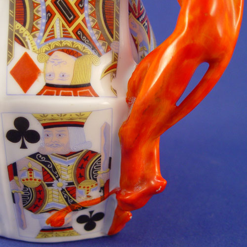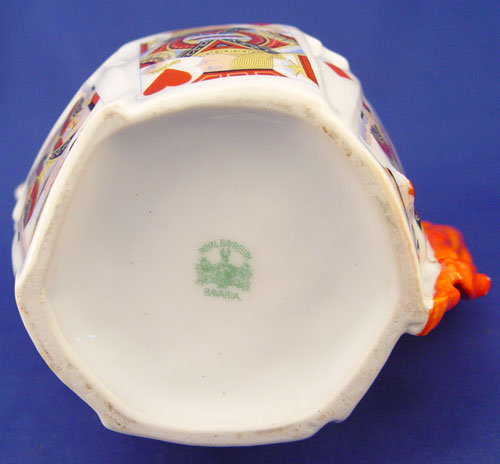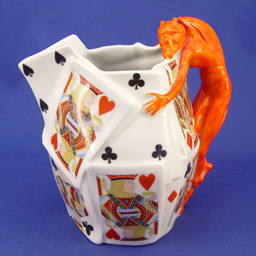 LARGE ROYAL BAYREUTH DEVIL AND CARDS PITCHER: 9 1/2'' high, green mark.