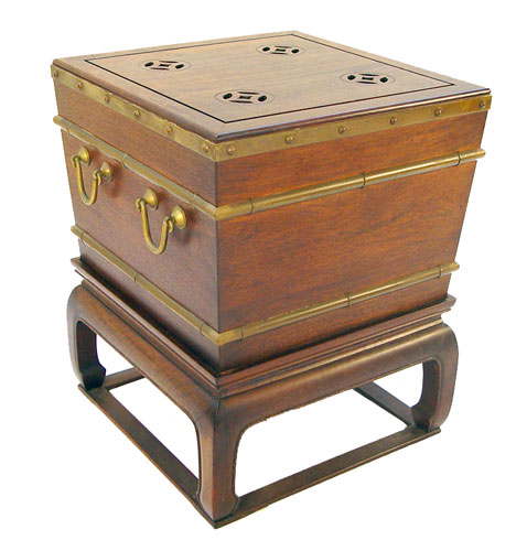 CHINESE CELLERETTE ON STAND: Removable pierced cover, 27 1/2''h. x 22'' x 22''.