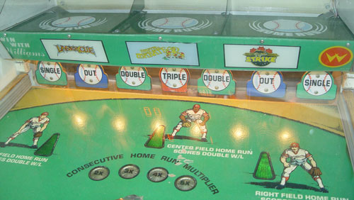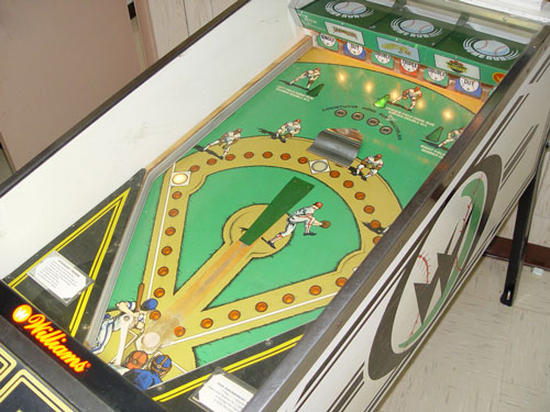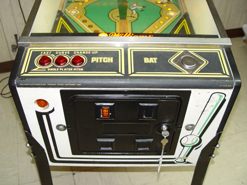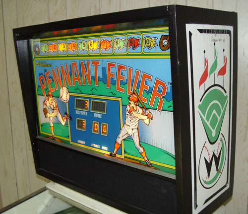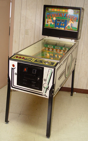 WILLIAMS PENNANT FEVER BASEBALL / PINBALL MACHINE: 1984 Full sized. All original, plug replaced. Lights up, plays. 68'' high x 55 1/2'' long x 24 1/4'' across.