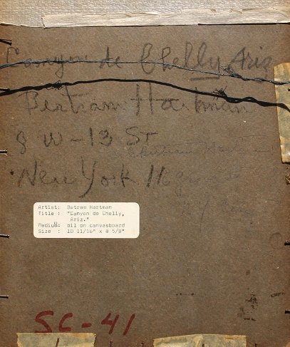 HARTMAN, Bertram, (American, 1882-1960): ''Canyon de Chelly, Arizona'', O/B, 10 3/4'' x 8 3/4'', signed, titled verso, framed, 13'' x 11''. Est. $800/1200**