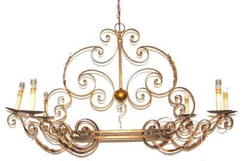 OPEN SCROLL 6 LIGHT WROUGHT IRON CHANDELIER: Unusual oval design, approx. 26'' x 44''.