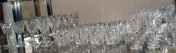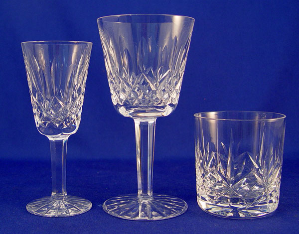 WATERFORD CRYSTAL STEMWARE: Includes ''Lismore'' 5 1/8'' sherry glasses (12), ''Lismore'' 5 3/4'' water goblets (8) & 2 7/8'' old fashion glasses in an unidentified pattern (8).