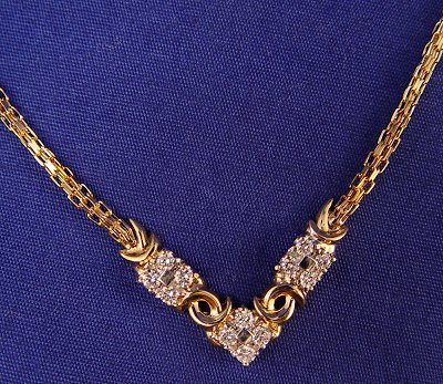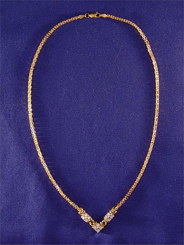 1.00 CTW DIAMOND CHEVRON NECKLACE: 14k yellow gold necklace set with 12 round brilliant cut diamonds. 1.00 CTW. Rated VS in clarity and G-H in color. The diamonds are prong set. ''V'' shaped center piece with fancy square link chain. 18'' Lobster claw clasp. Weight: 11.6 grams.
