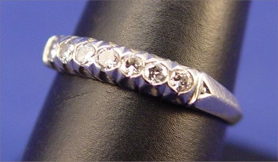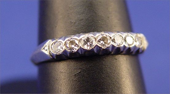 PLATINUM .33 CTW DIAMOND WEDDING BAND: Seven round brilliant cut diamonds. TOTAL WEIGHT: .33 Ct. Approx. Rated VS2-SI1 in clarity and H-I in color. Weight: 3.6 grams. Size 8