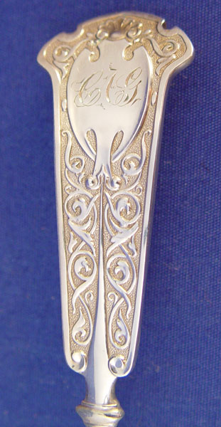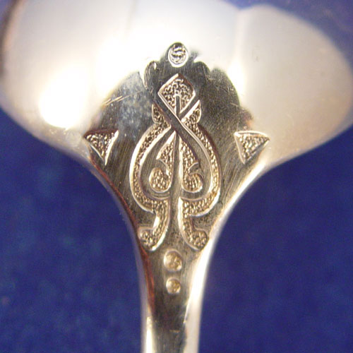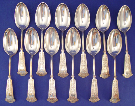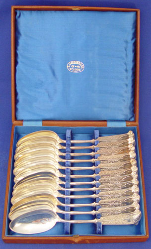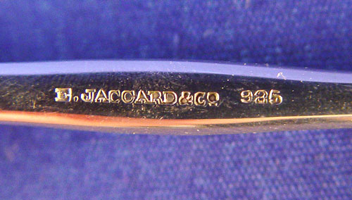 12 JACCARD STERLING SILVER SPOONS: Matched 12 piece set in original box. Marked ''E Jaccard & Co 925 Patent''. Monogrammed 7'' long Approx. 14.8 troy oz.