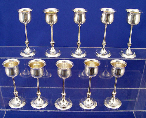 10 AUSTRIAN STERLING LONG STEM CORDIALS: Toucan hallmark, Ca. 1920's. Approx. 352.3 grams or 11.32 oz.