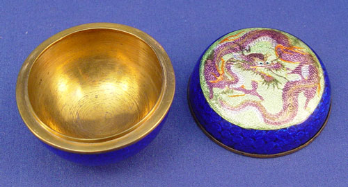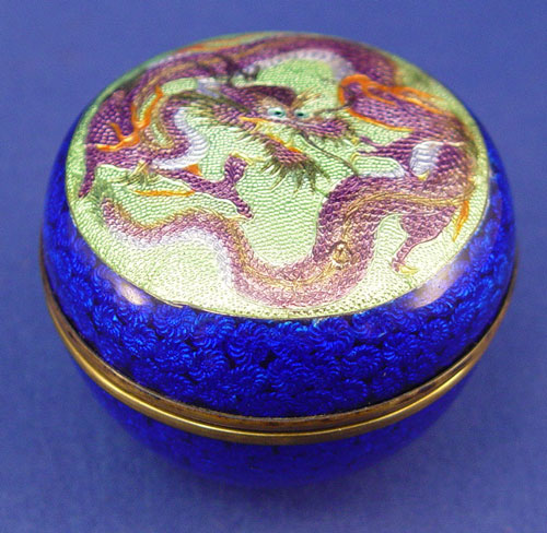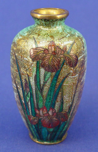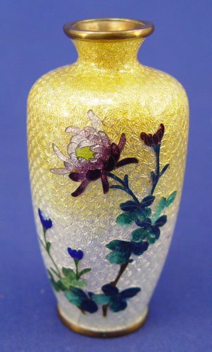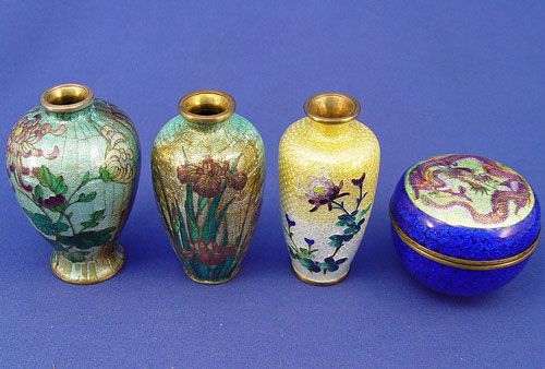 FOUR PIECE LOT OF IMPORTANT GINBARI CLOISONNE: To include, three vases and a dresser jar, vases approx. 3 1/2''h. with exquisite colorful floral detail, dresser jar with dragon motif, 3''dia.