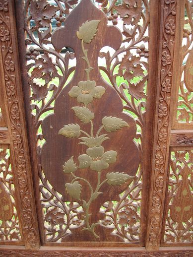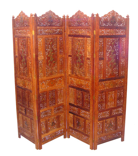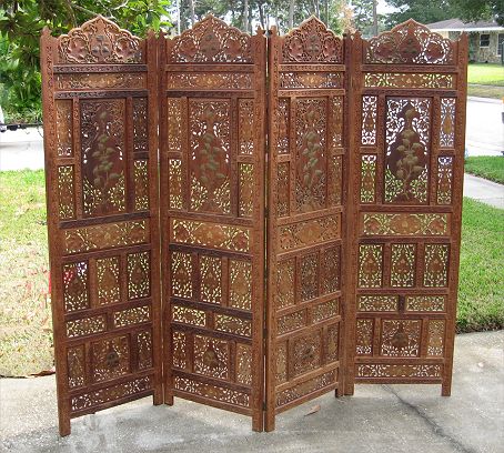 INDIA CARVED FLOOR SCREEN: 4 panels 74 1/2'' x 21 3/4'' making an approximate length of 88''.