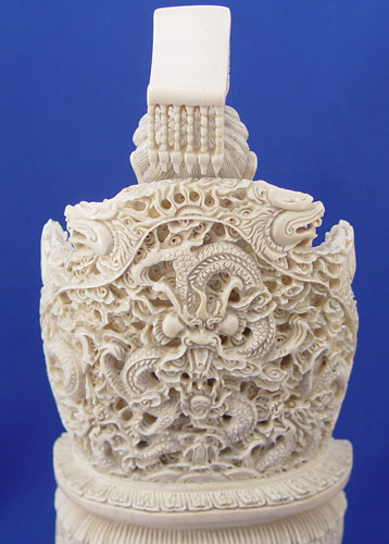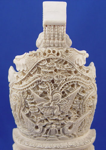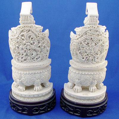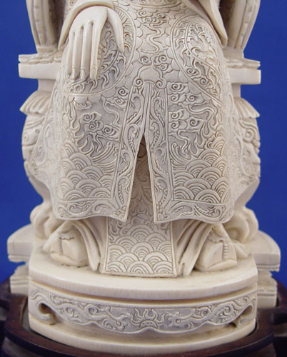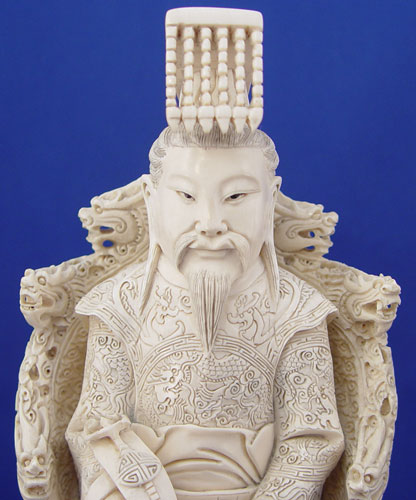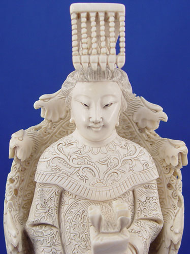 CHINESE CARVED IVORY EMPEROR AND EMPRESS: Each approx. 12''h., signed on the underside. Custom carved wood stands.