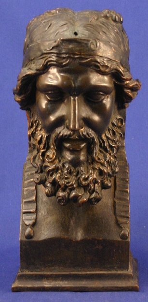 ANTIQUE BRONZE SCULPTURE OF A BEARDED MAN: 8''h., no visible signature. Missing wreath, hole in back. Est. $300/500**
