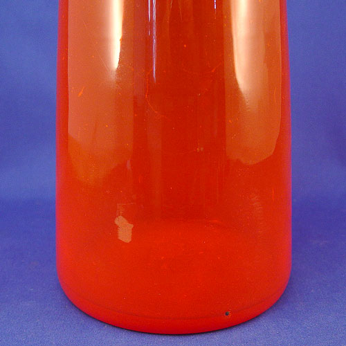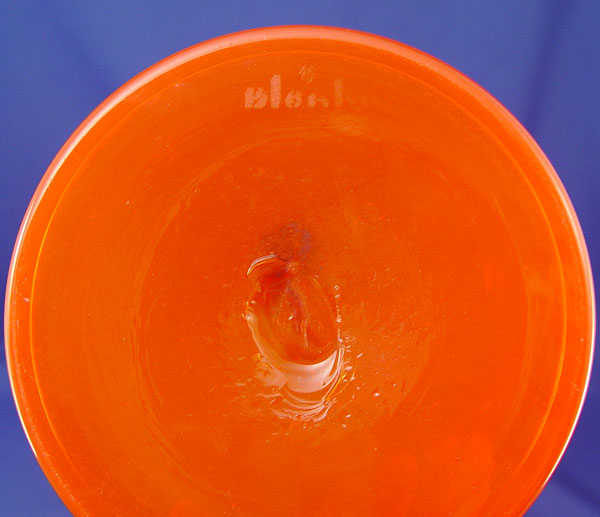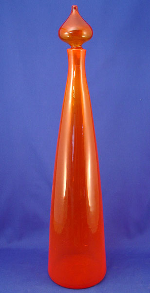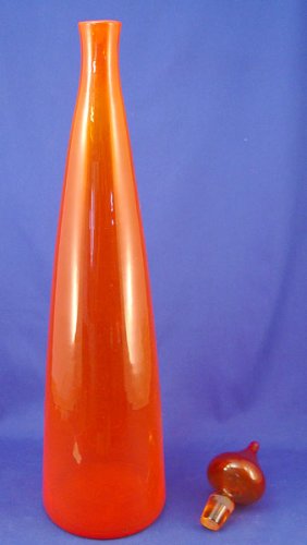 TALL BLENKO TANGERINE ORANGE BLOWN GLASS DECANTER: 26'' h. including original stopper, signed in block letters.