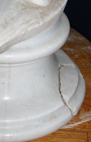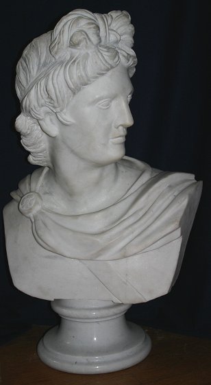 NEOCLASSICAL ALABASTER SCULPTURE: Bust of Male Figure, 31'', repaired crack to marble plinth, sporadic abrasions.