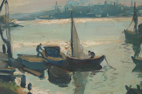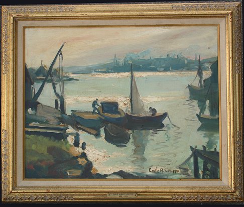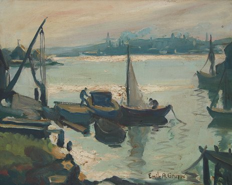 GRUPPE, Emile, (American, 1896-1978): Harbor Scene, O/C, 16'' x 20'', signed, framed, 20 1/2'' x 24 1/2'', copy of Vose Galleries appraisal to accompany painting. Est. $3000/5000**