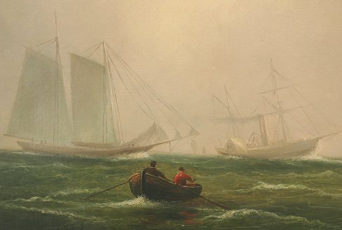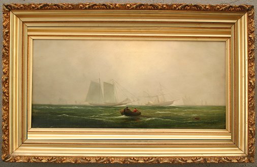 WEBBER, Wesley Elbridge, (American, 1841-1914): ''Foggy Weather'', Oil/C, 14'' x 24 1/2'', signed and dated 1878, period gilt frame, 18'' x 29'', pencil titled verso. Small fleck of inpaint in sky. Est. $3000/5000**