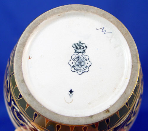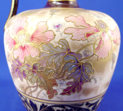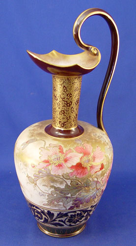 A FINE DOULTON BURSLEM EWER: Floral decorated earthenware with flowers outlined in gold. 13 1/2''h.