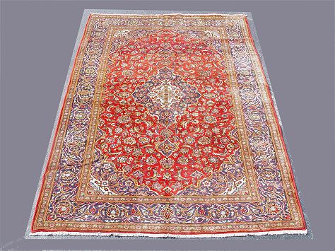 HAND TIED PERSIAN CARPET: Approx 8' x 11', red ground.