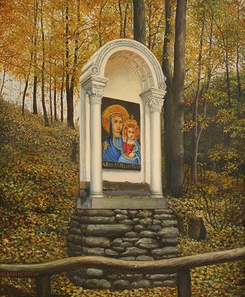 NEMETHY, Albert, (American, 1920-): National Shrine of the North American Martyrs, Auriesville, New York, O/C, 17'' x 14'', signed, earlier gilded gesso frame with wear, 27'' x 24''. Est. $600/800**