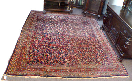 SEMI- ANTIQUE PERSIAN BIDJAR CARPET: Darkest blue field, approx. 11'7'' x 8'10''.