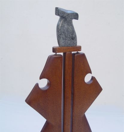 COSTELLO, Michael, (American, 20th C.): Modern Kinetic Sculpture, Wood and Stone, 40 1/2'' h., signed and dated 1993.