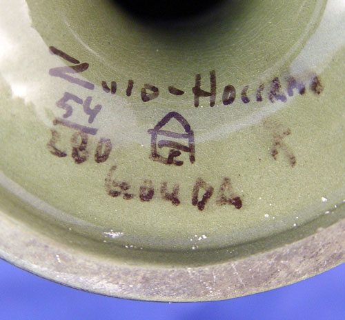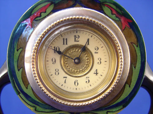 GOUDA POTTERY TABLE TOP CLOCK: Please note professional restoration. 11 1/4'' h., the base is 3 7/8''