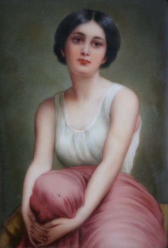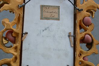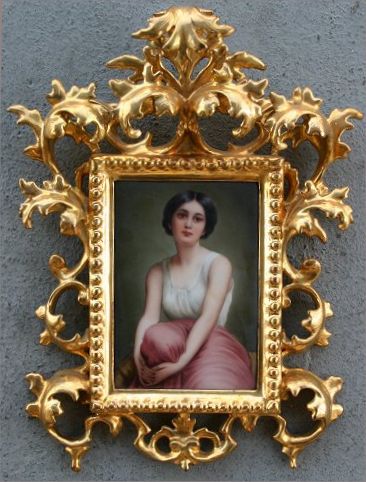 'CONTEMPLATION'' MINIATURE ON PORCELAIN: After Adolphe Plot, 5 3/4'' x 4'', carved & gilded Italian frame with minor repairs, 12'' x 10''. Est. $500/800**