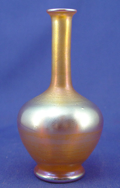 TIFFANY FAVRILE ART GLASS BUD VASE: 5 3/4''H. Bottleneck form, signed and numbered ''112 9608L L.C.Tiffany Favrile''.