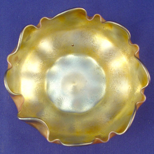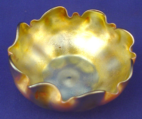 TIFFANY FAVRILE ART GLASS BOWL: Signed L.C.T., 2 1/4''h., 4 1/2'' dia.