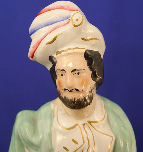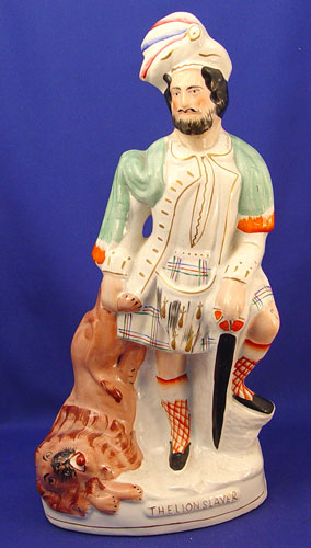 19TH C STAFFORDSHIRE FIGURE ''THE LION SLAYER'': 16 1/2'' tall, please note old restoration to neck.