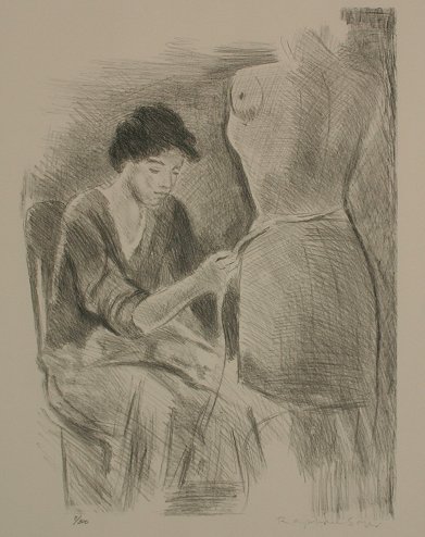SOYER, Raphael, (American, 1899-1987): Dressmaker, Lithograph, 24'' x 18'' sight size, pencil signed, numbered 8/300, burled frame, 35'' x 30''.