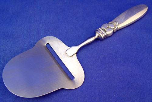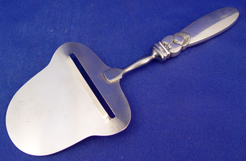 GEORG JENSEN ''CACTUS'' STERLING CHEESE PLANE: Pattern design by Gundolph Albertus, 8 1/8''l.