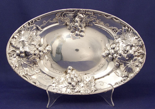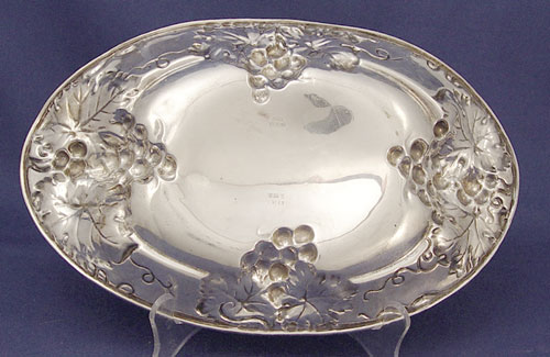 BIRKS CANADIAN STERLING TRAY: Repousse grape design, 11''l, 1''h. Approx. 202.5 grams or 6.51 oz.