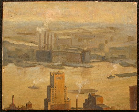 WHITE, Thor, (American, 20th C.): WPA style Harbor Scene, O/C, 16'' x 20'', signed, unframed.
