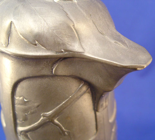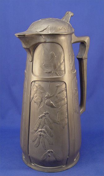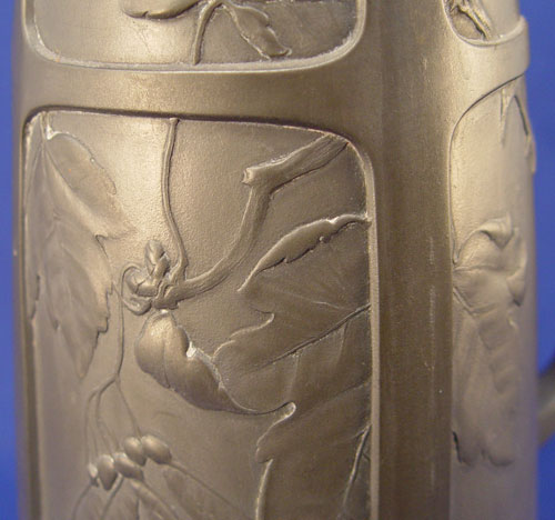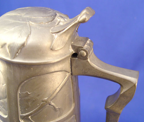 ART NOUVEAU KAYSERZIN QUALITY TANKARD: Flowing naturalistic botanical design. 13 1/2''h, unsigned.