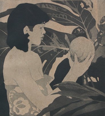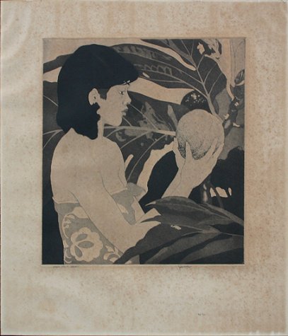 KELLY, John, (American, 1879-1972): ''Breadfruit Hawaii, Etching, 16'' x 14'', impression size 10 3/4'' x 9 3/4''. Scattered foxing and staining throughout, needs restoration.