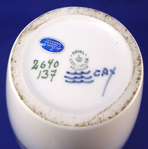 ROYAL COPENHAGEN DANISH PORCELAIN ORCHID VASE: A tall 12 1/4''h. with image of an orchid. Royal Copenhagen three wave mark.