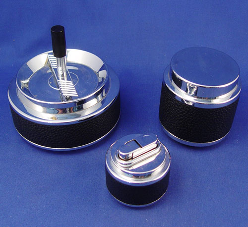 3 pc BERNARDO CIGARETTE SET: To include the original roulette ashtray, lighter, and cigarette box.