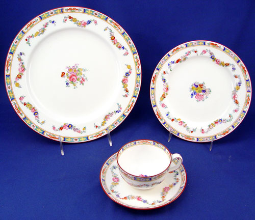 ''MINTON ROSE'' FINE CHINA: 21 pieces to include 5 dinner plates, 10'' dia., 6 salad plates, 5 cups and 5 saucers. Enameled floral design on white ground.