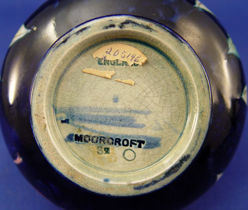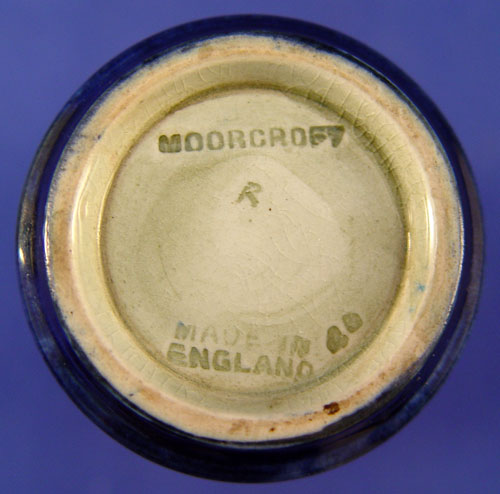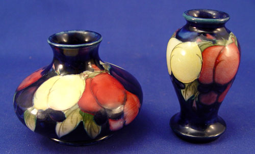 2 MOORCROFT POTTERY VASES IN THE WISTERIA PATTERN: The older squat vase is 3''h, the taller vase is 4''h.