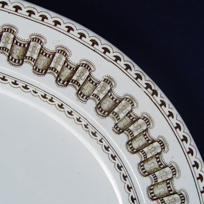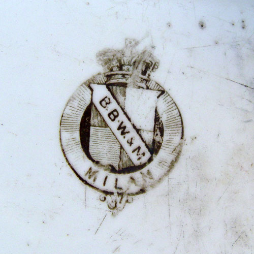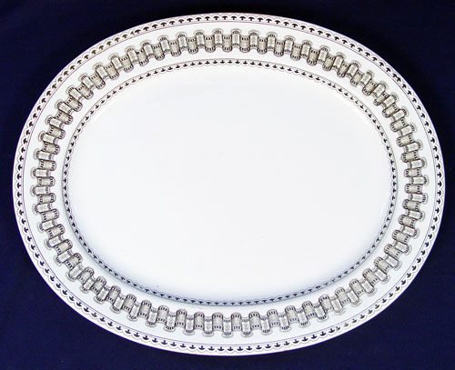 STAFFORDSHIRE ''MILAN'' TRANSFERWARE PLATTER: BBW & M, 22'' x 17 1/4''. Free of chips or cracks, some surface burning along edge.