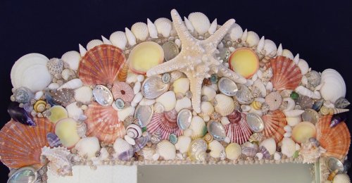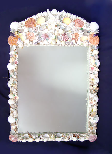 SHELL ART MIRROR: 40'' x 27'', hand crafted future folk art.