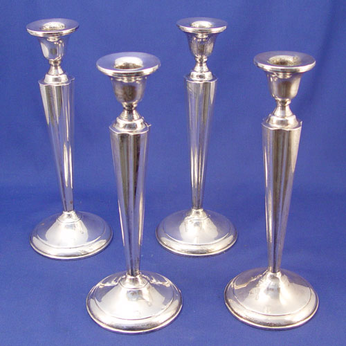 MATCHED SET OF 4 STERLING CANDLESTICKS: 10''h, weighted, no makers mark.