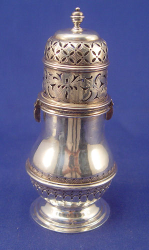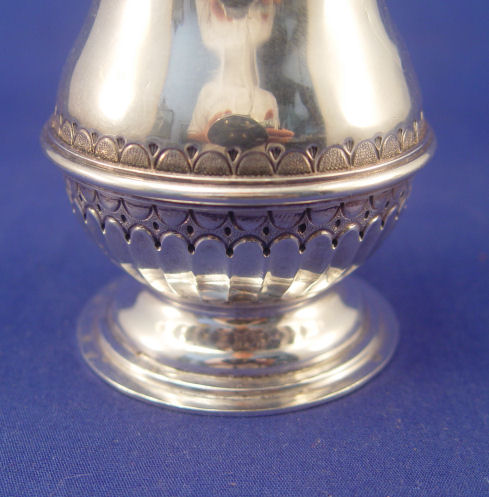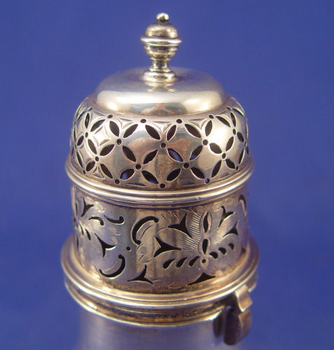ENGLISH SILVER MUFFINEER: London, 1905 maker B & S. 6 1/2''h. Approx. 207.9 grams or 6.68 oz. No monogram.