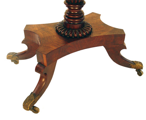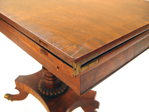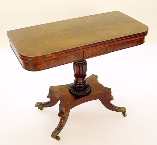 FEDERAL CARVED AND BRASS MOUNTED MAHOGANY CARD TABLE: 29''H. X 36'' X 17 3/4'', with leaves extended, 35''.