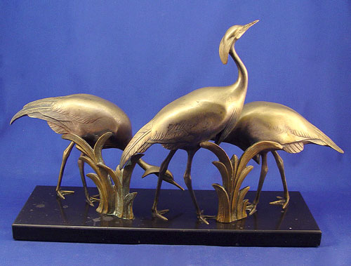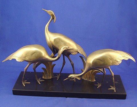 DECO ERA BRONZE SCULPTURE OF 3 HERONS: Marble plinth, 13''h. x 21''w., signed Etling, Paris on the base.
