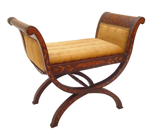 19TH C DUTCH MARQUETRY INLAY WINDOW BENCH SEAT: 25''h. x 30'' x 15 1/2''.