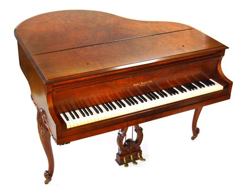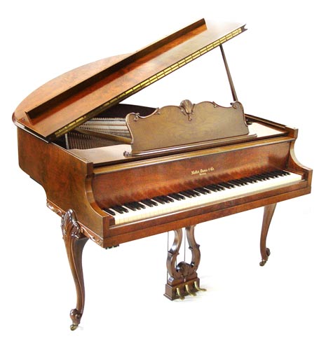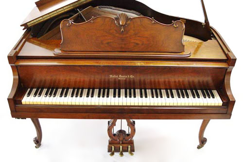 1940 HALLET, DAVIS & CO BABY GRAND PIANO: Petit Grand Piano. Spruce soundboard and ribs, Measures 40'' high x 59'' wide x 4' 9'' long. Serial number 185704 dates it to 1940. Plays beautifully. Comes with Dampp-Chaser Automatic Humidistat for grand pianos. 88 Keys.