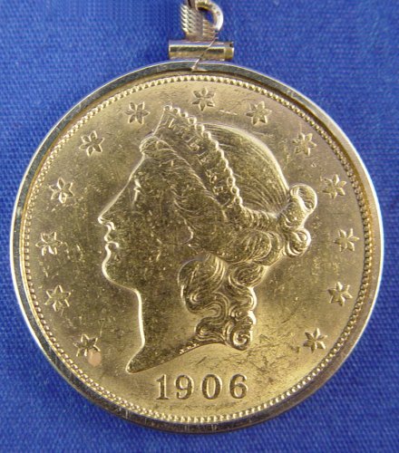 1906-S $20 LIBERTY GOLD COIN: Type III Double Eagle twenty dollar gold coin in fine condition.
