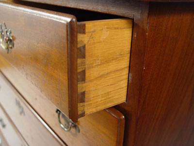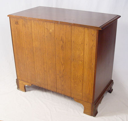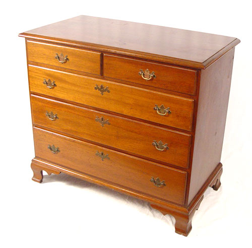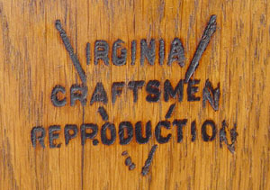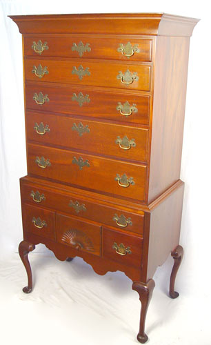 VIRGINIA CRAFTSMEN QUEEN ANNE STYLE FLAT TOP HIGH BOY AND DRESSER: 1) a two part chest on stand highboy, 6 drawers over 3 drawers, 74''X 37 1/2'' X 21''. 2) Matching 2 over 3 drawer chest of drawers, 35''h. x 39'' x 21''. . Each branded ''Virginia Craftsmen Reproduction''.