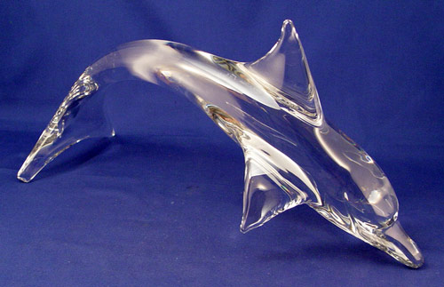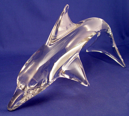 LARGE DAUM FRENCH LEAD CRYSTAL DOLPHIN: Signed ''Daum France'', 17.5 long x 8.5 h.