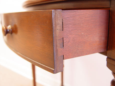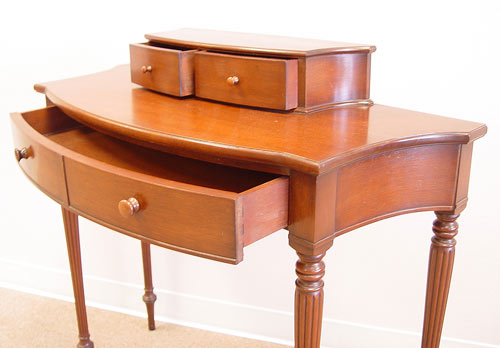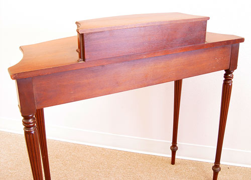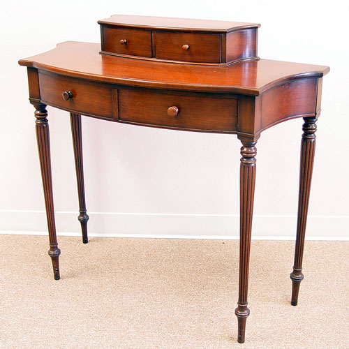 IMPERIAL JEFFERSONIAN MAHOGANY SHERATON STYLE HALL TABLE: 2 drawers over full length drawer, reeded legs. Imperial Genuine Mahogany label. 44''h. x 36'' x 16''